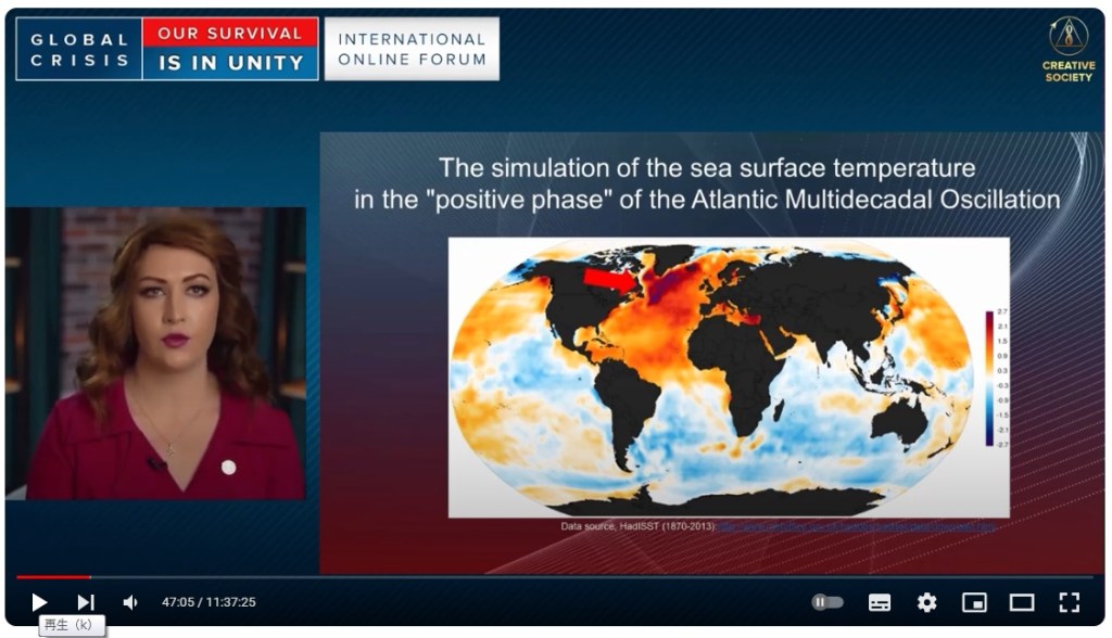 グリーンランドでも異変が起こっている。マントルプルームが南極と同様に地下に存在している。グリーンランド沖が最も海水温の上昇が激しい。それはマグマによる海水温の上昇が原因。その結果、メキシコ湾流が停止しかけている。