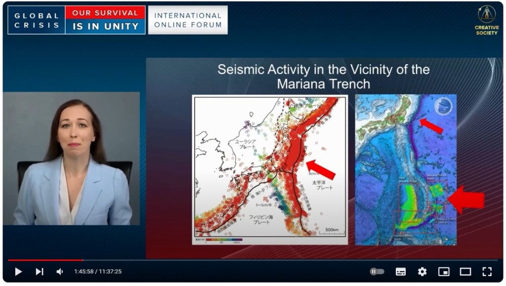シフトの引き金となる事象は、99.9%マリアナ海溝から起こると動画では断言され、そう説明されていますが、たつき諒さんの『私が見た未来』で書かれている2025年に7月に起こるとされる大災難で霊夢が指示した場所が、マリアナ海溝に非常に近いです。